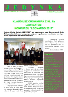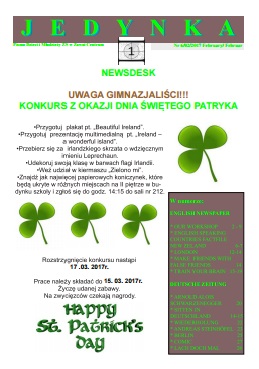 Od lutego 2011r. wydawana jest gazetka szkolna "Jedynka". Opiekunem gazety jest p. Katarzyna Wilczyńska.